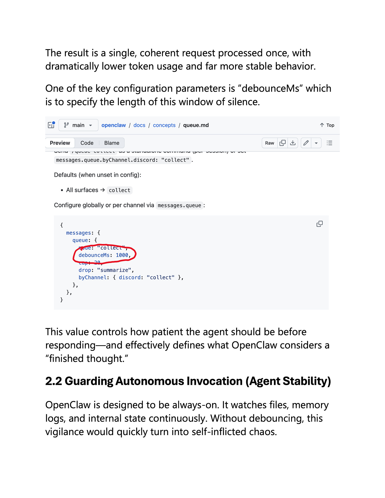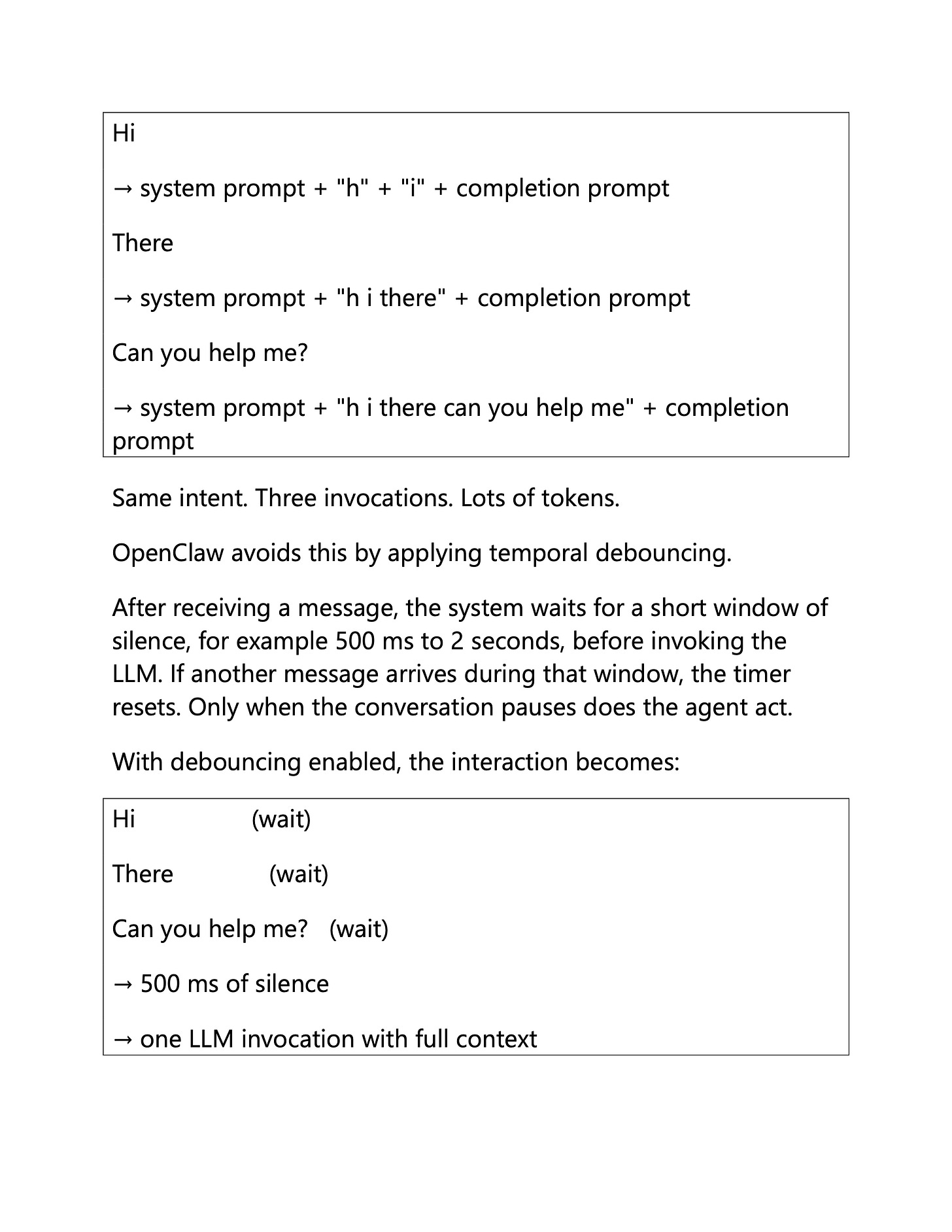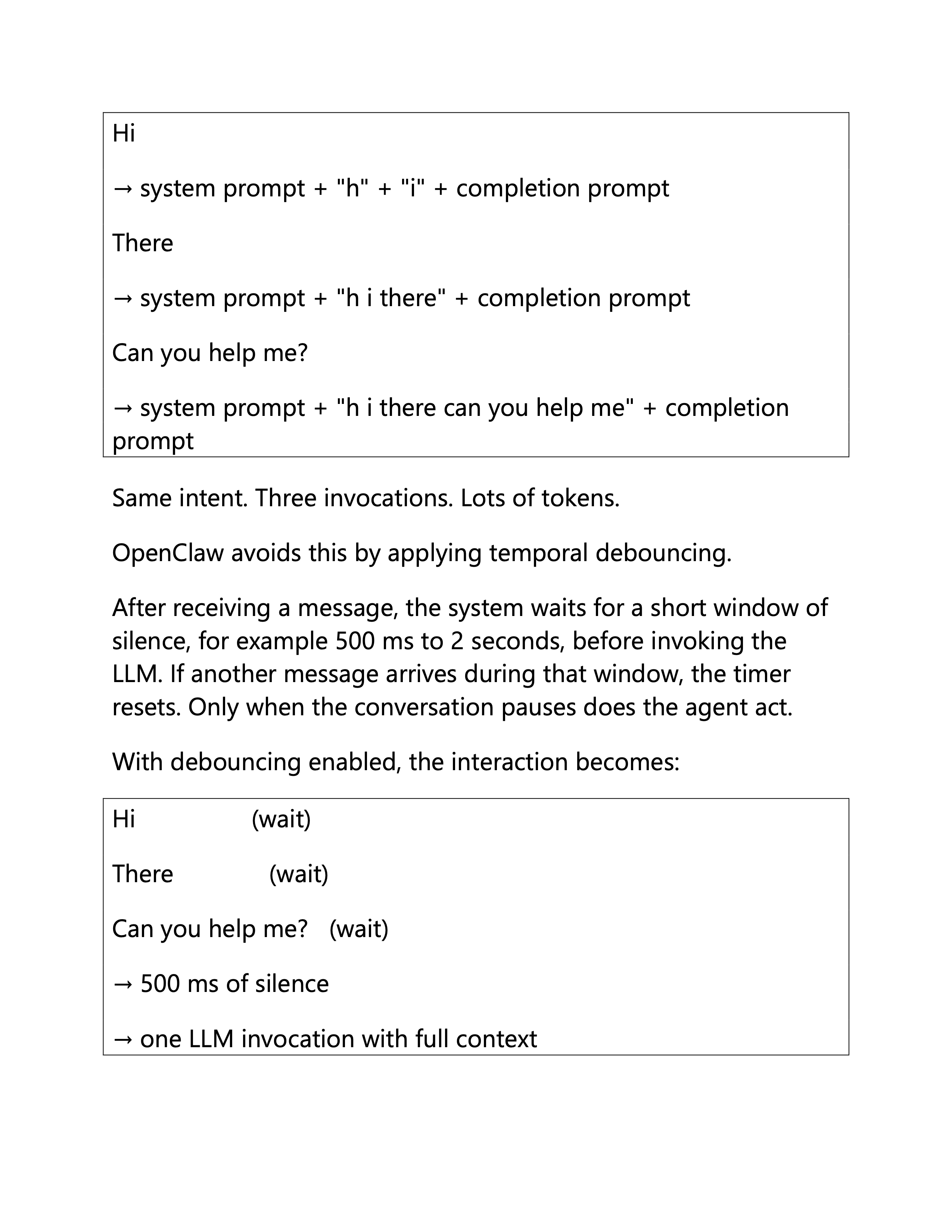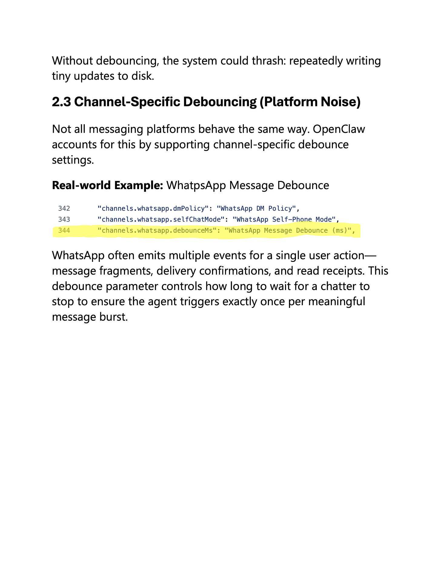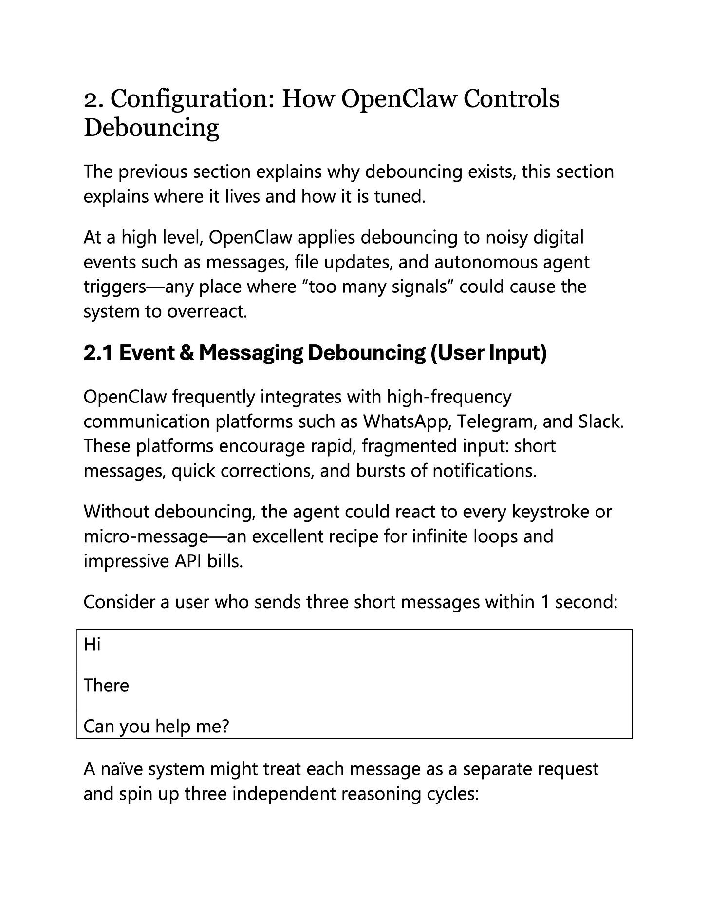 For OpenClaw, debouncing is key because it is meant to help integrate your work with high-frequency social channels such as WhatsApp, Telegram, and Slack. You can't be bounced around by every single signal.