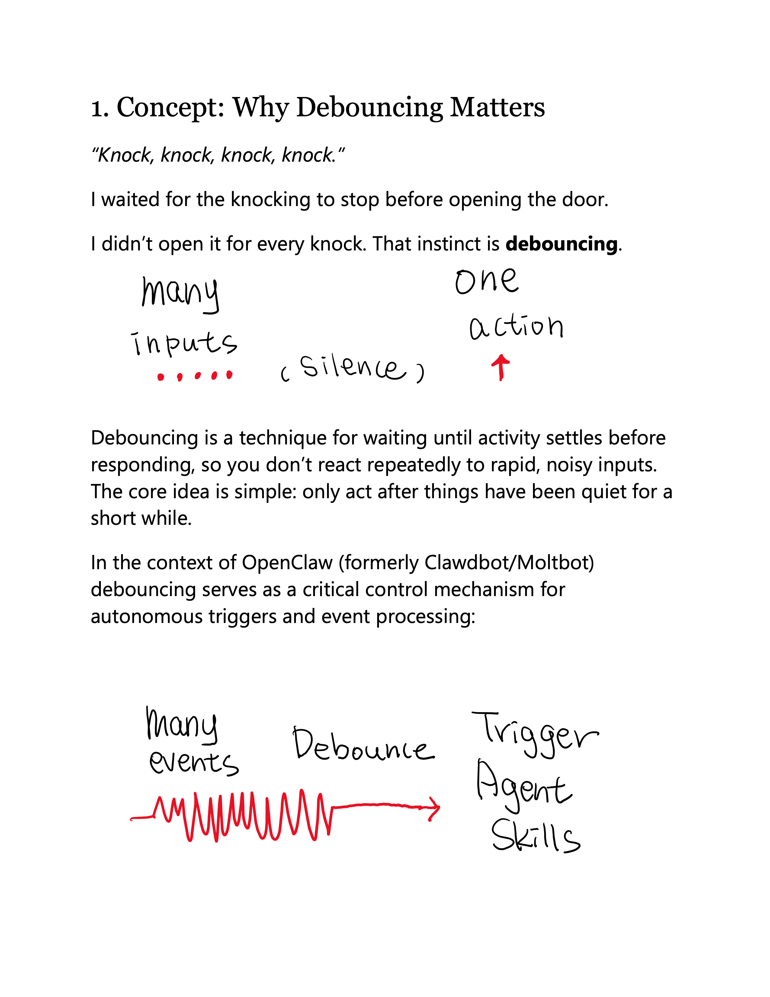 I made this study guide to help my students stay grounded in core computer science principles. I am using the very culprit of their anxiety, OpenClaw, as a real-world example to explain debouncing.
