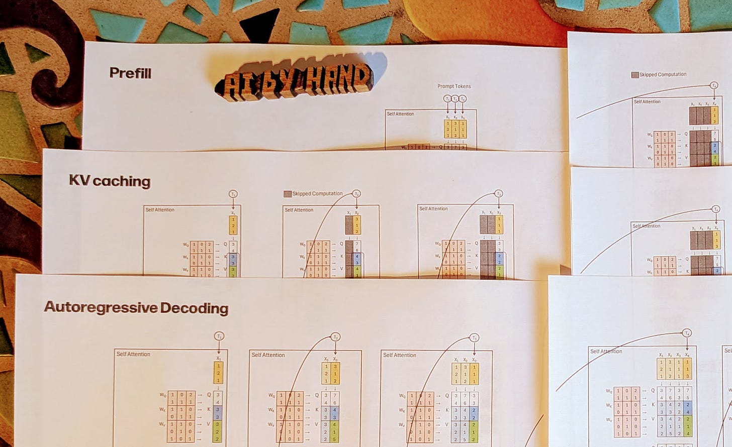 So I finally had an opportunity to sit down and created new worksheets about KV cache, comparing decoding vs. caching vs. prefill, side by side: