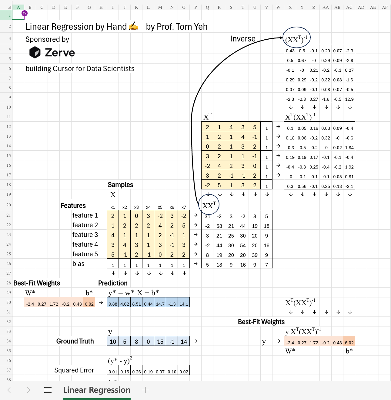 For those of you who are still interested in a career in data science, I created this exercise to walk you through linear regression by hand ✍️ inside Excel, so you can see every matrix operation unfold right in front of you and finally understand what these two lines mean:
