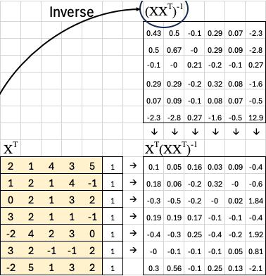 w = y @ X.T @ np.linalg.inv(X @ X.T)