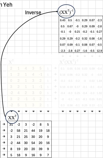 We then multiply this magic matrix by the ground truth vector y or equivalently, This gives us the optimal weights (and bias) that minimize the squared error between predictions y* and grouth truth values y.