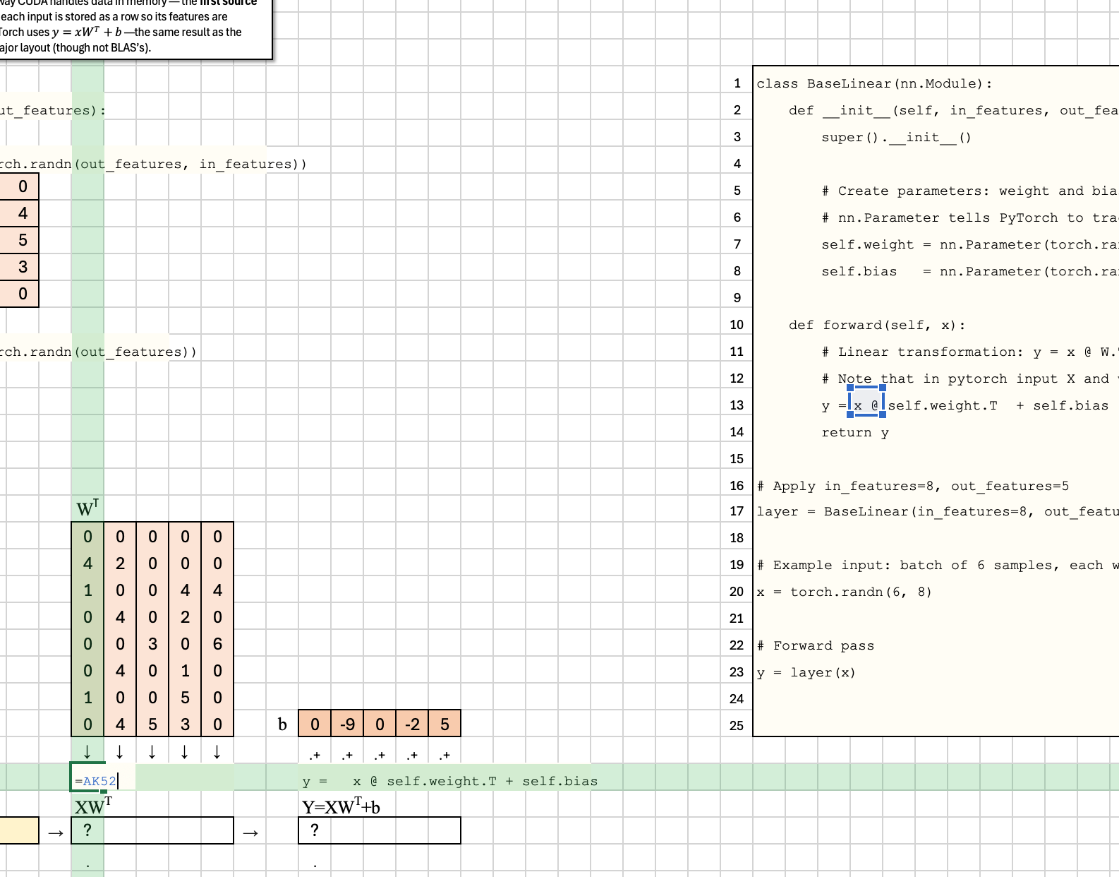 👇 Scroll to the bottom to download this Excel Blueprint. Tip: Press F2 to highlight which line of PyTorch code a calculation corresponds to.