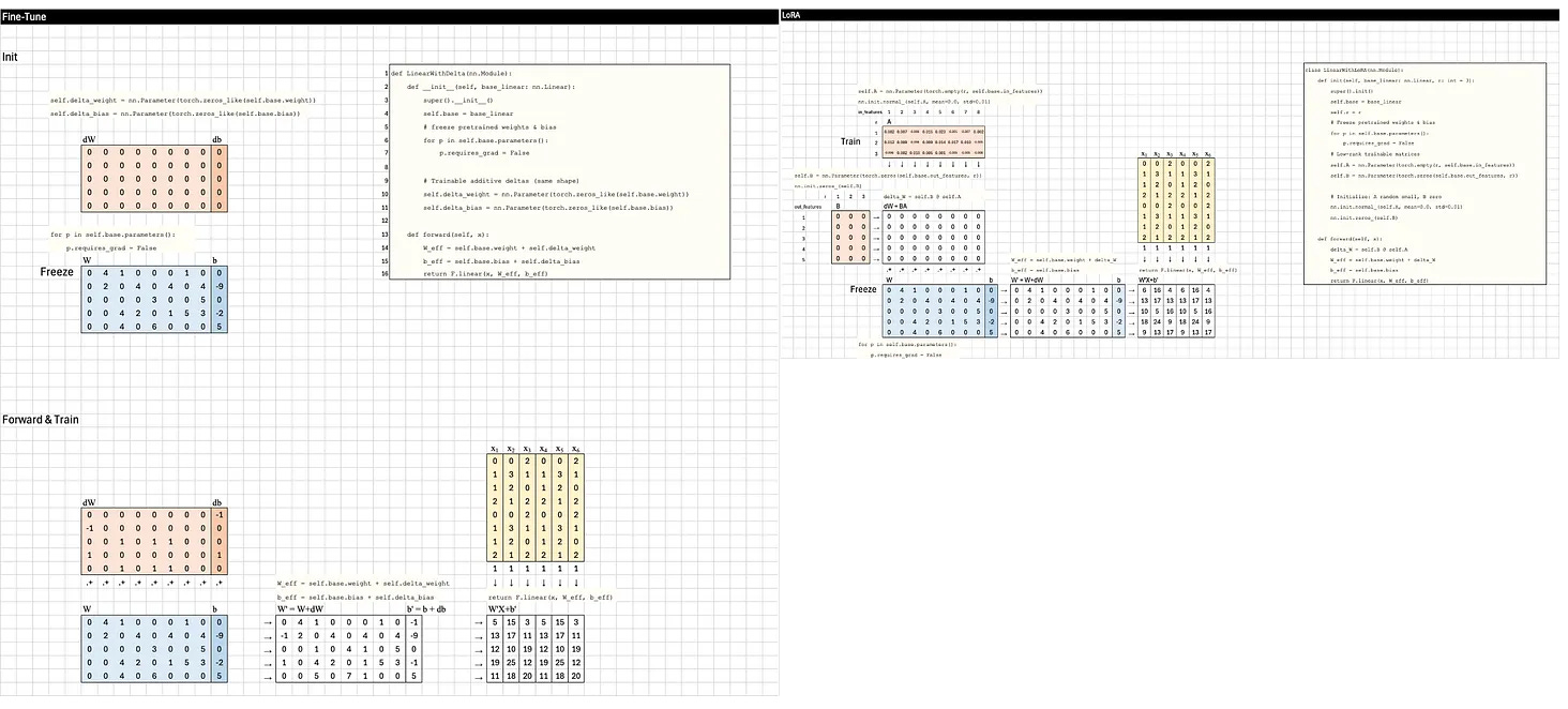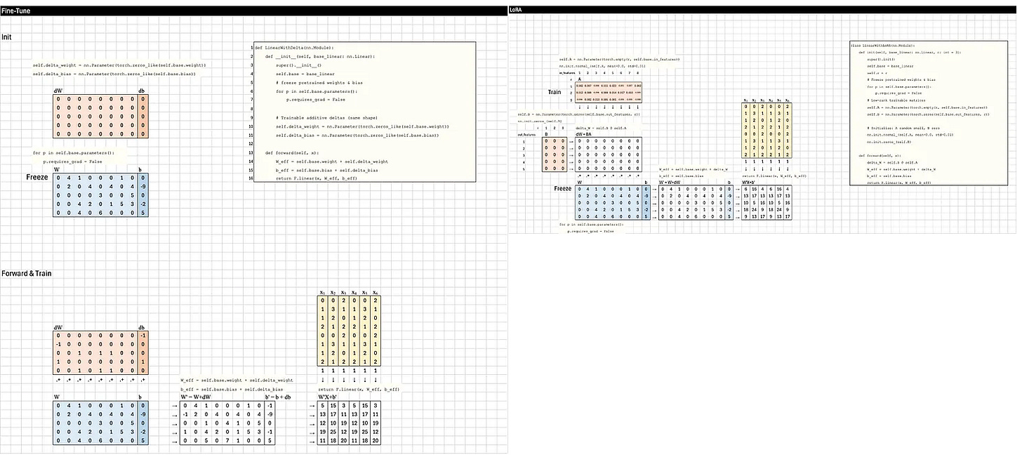 Finally, you have all you need to follow the “Math-PyTorch” Blueprint I made for Fine-tuning vs LoRA. 🙌