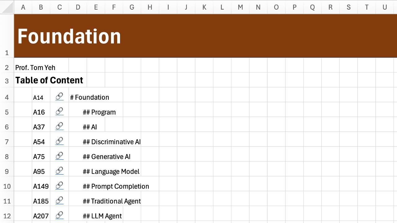 Module 1: FoundationIntroduction to Agentic AI CourseProf. Tom YehJan 16, 2026∙ PaidShare🔗 View the Excel Workbook OnlineProgramThis post is for paid subscribersSubscribeAlready a paid subscriber? Sign in