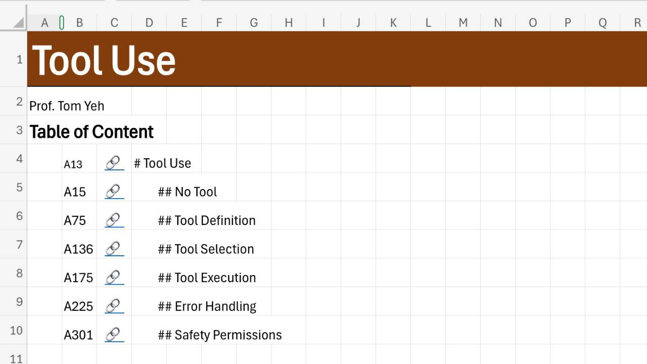 Module 4: Tool UseIntroduction to Agentic AI CourseProf. Tom YehJan 17, 2026∙ PaidShare🔗 View the Excel Workbook OnlineThis post is for paid subscribersSubscribeAlready a paid subscriber? Sign in