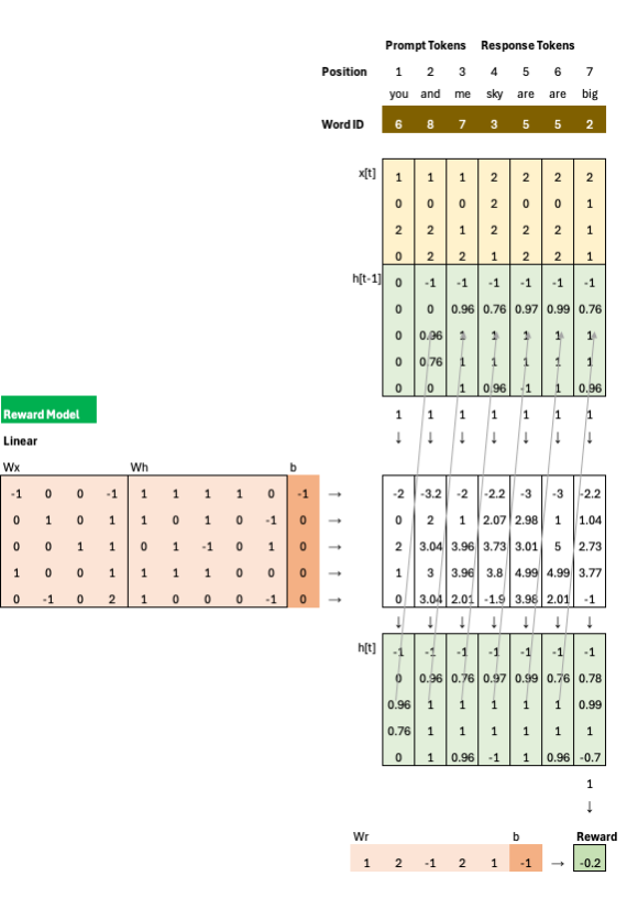 Language Model: I use an autoregressive RNN as the language model instead of a transformer stack so you can focus entirely on the RLHF component, which works the same way regardless of architecture. The RNN keeps the example simple and avoids unnecessary distraction.