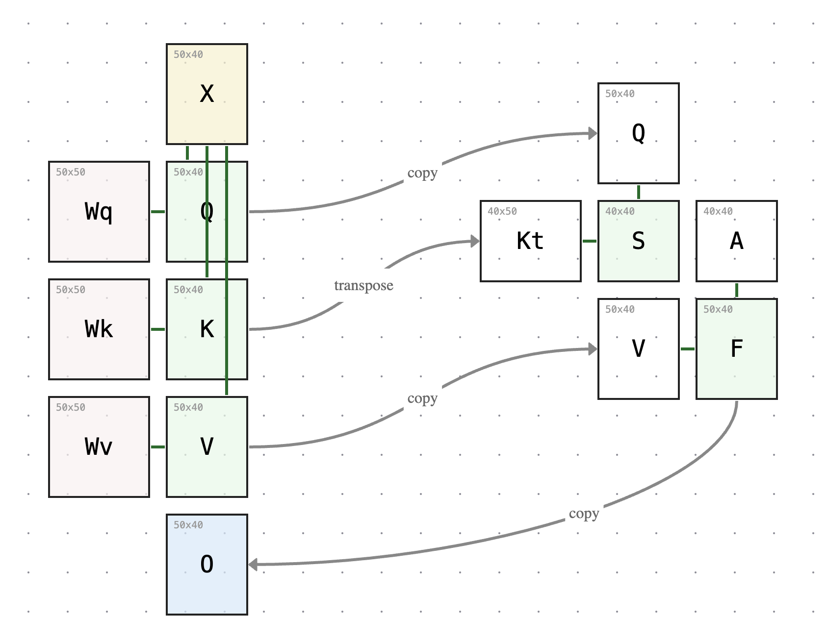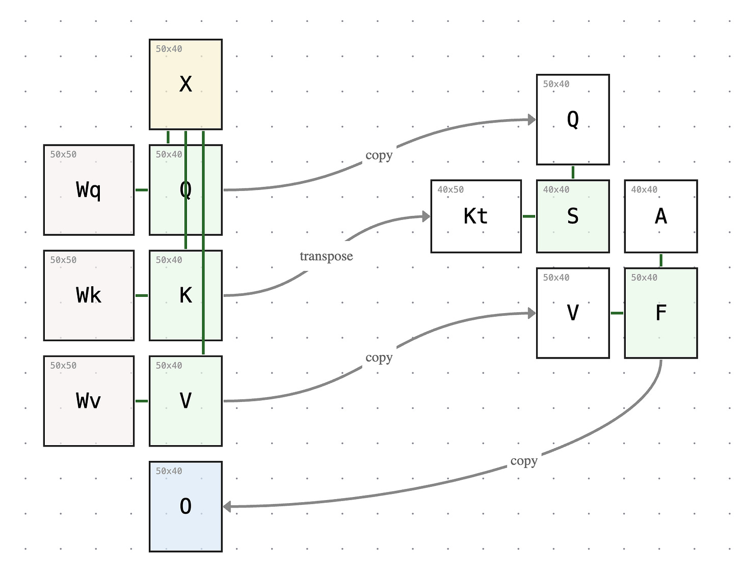 Give Self Attention Flow a try. Resize any matrix in the diagram and watch the dimensions “flow” to other matrices in the self-attention mechanism.