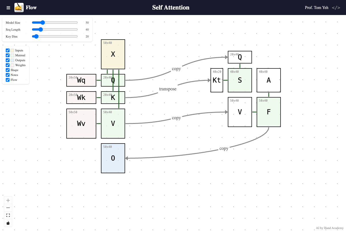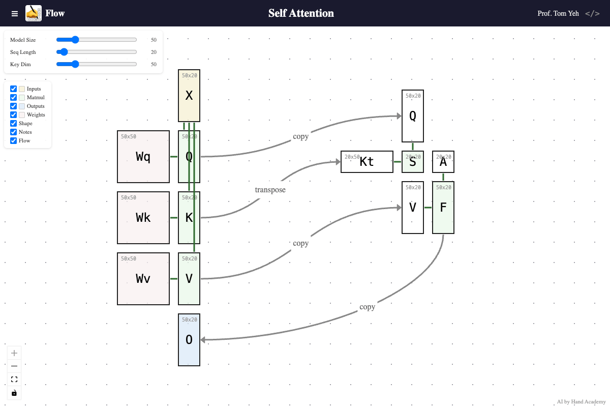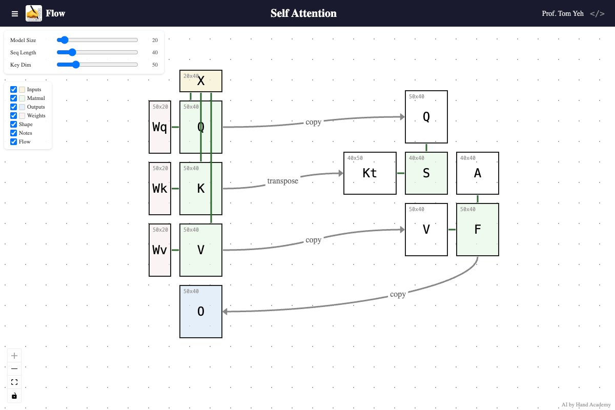 Building upon Matmul Flow I released two weeks ago, I’d like to share with you Self-Attention Flow — my attempt to turn the self-attention diagram I’ve drawn by hand ✍️over a hundred times in class into an interactive tool you can explore yourself.