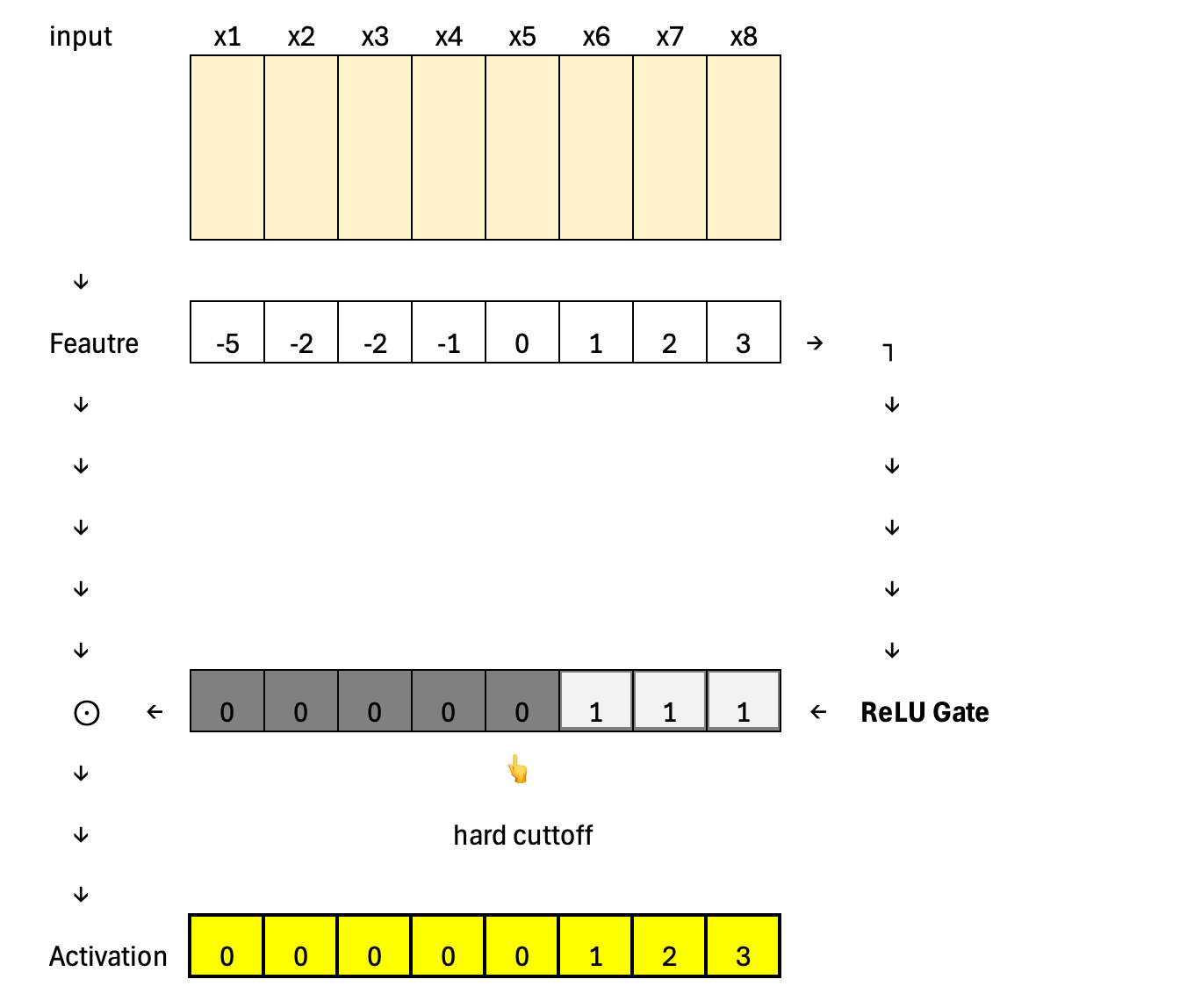 Going even further back, ReLU represents the extreme case of static activation: a hard cutoff at zero with no gating signal at all. Every neuron follows the same fixed rule, which highlights why later designs moved toward input-dependent, learnable gating.