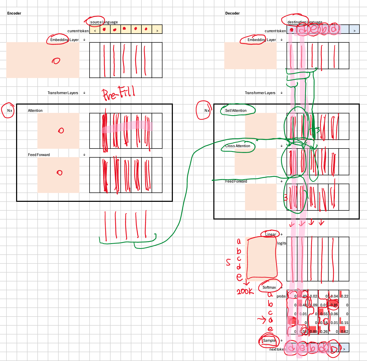Level 3 — Tensors (AI by Hand ✍️): You trace how tokens become vectors, how encoder layers can run in parallel during prefill, how decoder layers must run one token at a time during decoding, and how shapes stay consistent as representations flow through attention, cross-attention, and feed-forward layers.