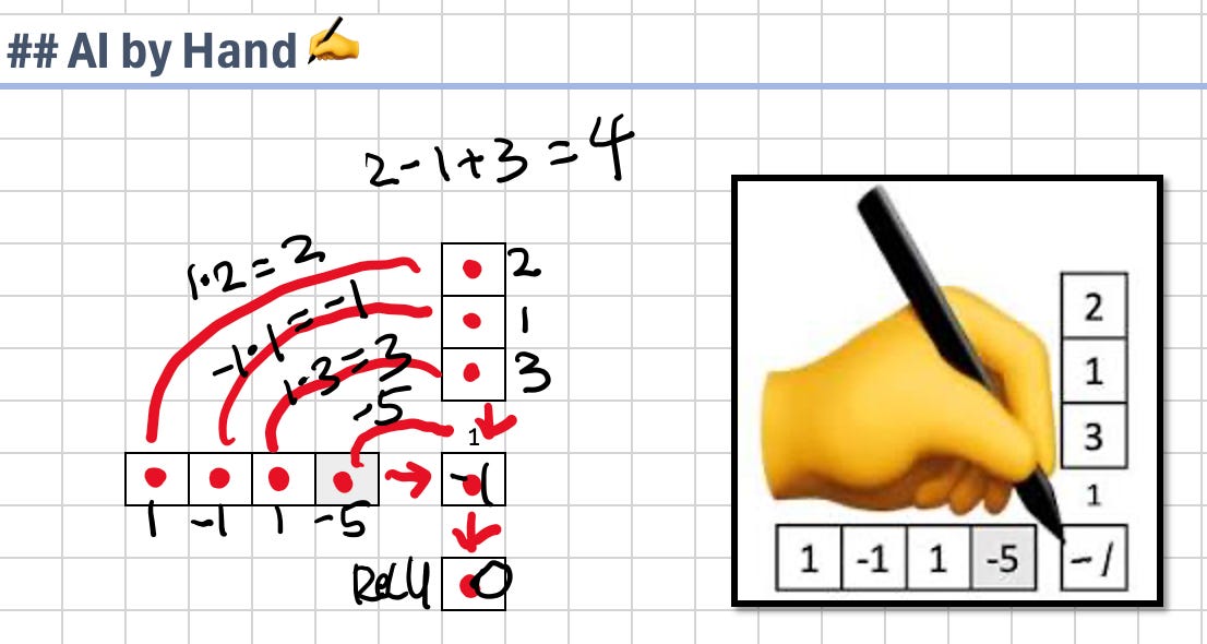 Level 5 — Excel: You replicate the full computation step by step in Excel—without libraries, abstractions, or training wheels—so you can directly observe how changing numbers affects the output.